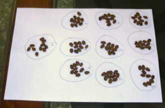 ![]() | 3.- Selección Tome, al azar 10 grupos de 10 semillas y los clasifique sobre un folio. |